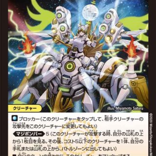 ブロッカー(このクリーチャーをタップして、相手クリーチャーの攻撃先をこのクリーチャーに変更してもよい)このクリーチャーがバトルに勝った時、自分の山札の上から1枚目をマナゾーンに置いてもよい。そうしたら、カードを1枚、自分のマナゾーンから手札に戻してもよい。
