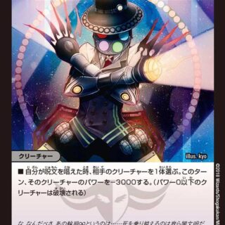 ブロッカー(このクリーチャーをタップして、相手クリーチャーの攻撃先をこのクリーチャーに変更してもよい)スピードアタッカー(このクリーチャーは召喚酔いしない)W・ブレイカー(このクリーチャーはシールドを2つブレイクする)このクリーチャーが攻撃する時、攻撃の後、このクリーチャーを破壊する。