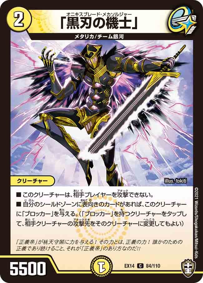 このクリーチャーは、相手プレイヤーを攻撃できない。自分のシールドゾーンに表向きのカードがあれば、このクリーチャーに「ブロッカー」を与える。(「ブロッカー」を持つクリーチャーをタップして、相手クリーチャーの攻撃先をそのクリーチャーに変更してもよい)