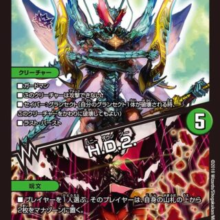 自分のシールドをすべて墓地に置く。その後、このようにして墓地に置いたカードの枚数より1枚多く、自分の山札の上から裏向きのまま、それぞれ新しいシールドとしてシールドゾーンに置く。