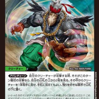 ムゲンクライム 2(自分のクリーチャーを2体タップし、 [ww02]支払って、このクリーチャーを自分の手札または墓地から召喚してもよい)ブロッカー(このクリーチャーをタップして、相手クリーチャーの攻撃先をこのクリーチャーに変更してもよい)このクリーチャーは攻撃できない。