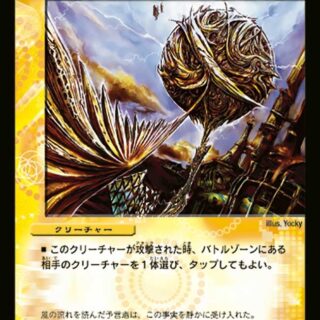 S・トリガー(この呪文をシールドゾーンから手札に加える時、コストを支払わずにすぐ唱えてもよい)バトルゾーンにある相手のクリーチャーを1体選び、持ち主のマナゾーンに置いてもよい。その後、相手のマナゾーンから進化ではないクリーチャーを1体選び、相手はこれをバトルゾーンに出す。