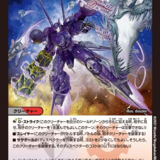 ブロッカーこのクリーチャーをバトルゾーンに出した時、自分のシールドをふたつ墓地に置く。W・ブレイカー(このクリーチャーはシールドを2枚ブレイクする)