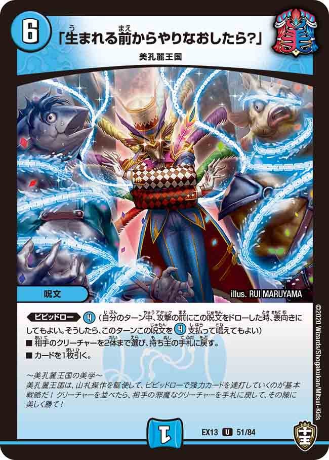 ~美孔麗王国の美学~美孔麗王国は、山札操作を駆使して、ビビッドローで強力カードを連打していくのが基本戦略だ!クリーチャーを並べたら、相手の邪魔なクリーチャーを手札に戻して、その隙に美しく勝て!