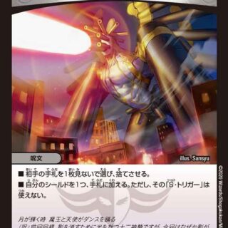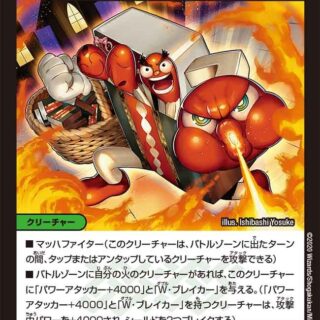 S・トリガー(この呪文をシールドゾーンから手札に加える時、コストを支払わずにすぐ唱えてもよい)相手は自身のアンタップしているクリーチャーを1体選び、マナゾーンに置く。