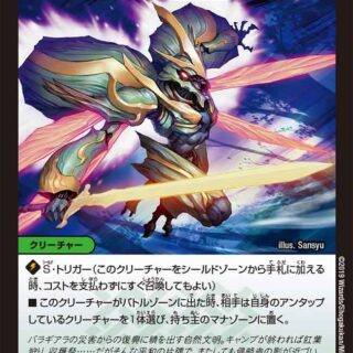 NEO進化:自分のジョーカーズ1体の上に置いてもよい。(クリーチャーが下にあれば、これをNEO進化クリーチャーとして扱う)侵略:コスト3以上のジョーカーズ(自分のコスト3以上のジョーカーズが攻撃する時、自分の手札にあるこのクリーチャーをその上に重ねてもよい)パワーアタッカー+4000(攻撃中、このクリーチャーのパワーを+4000する)W・ブレイカー(このクリーチャーはシールドを2つブレイクする)