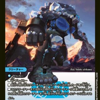 ブロッカーバトルゾーンに自分のクリーチャーが3体以上なければ、このクリーチャーは攻撃できない。マジボンバー 5(このクリーチャーが攻撃する時、自分の山札の上から1枚目を見る。その後、コスト5以下のクリーチャーを1体、自分の手札または山札の上から、バトルゾーンに出してもよい)