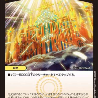 S・トリガー(この呪文をシールドゾーンから手札に加える時、コストを支払わずにすぐ唱えてもよい)相手のクリーチャーを1体選び、タップする。次の相手のターンのはじめに、そのクリーチャーはアンタップしない。