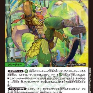 S・トリガー(このクリーチャーをシールドゾーンから手札に加える時、コストを支払わずにすぐ召喚してもよい)バトルゾーンにある自分のクリーチャーの数以下のコストを持つ、相手のクリーチャーを1体破壊する。