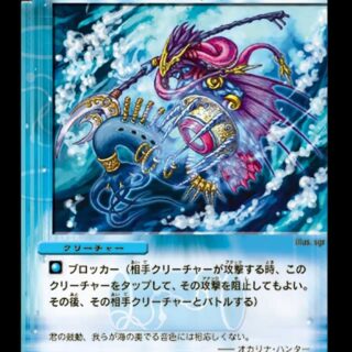 ブロッカー(相手クリーチャーが攻撃する時、このクリーチャーをタップして、その攻撃を阻止してもよい。その後、その相手クリーチャーとバトルする)このクリーチャーは攻撃することができない。このクリーチャーをバトルゾーンに出した時、相手は自身の手札を1枚選んで捨てる。