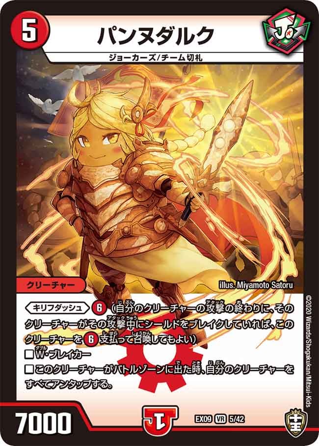 キリフダッシュ [ff06](自分のクリーチャーの攻撃の終わりに、そのクリーチャーがその攻撃中にシールドをブレイクしていれば、このクリーチャーを [ff06] 支払って召喚してもよい)W・ブレイカーこのクリーチャーがバトルゾーンに出た時、自分のクリーチャーをすべてアンタップする。
