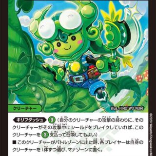 S・トリガー(この呪文をシールドゾーンから手札に加える時、コストを支払わずにすぐ唱えてもよい)どちらかのプレイヤーの山札の上から1枚目を見る。そのカードを持ち主の墓地に置いてもよい。カードを1枚引く。