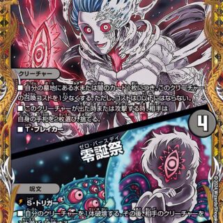 W・ブレイカー(このクリーチャーはシールドを2つブレイクする)このクリーチャーがバトルゾーンに出た時、このクリーチャーをタップする。自分のターンのはじめに、このクリーチャーはアンタップしない。自分のターン、1枚目のカードを引く時、自分のマナゾーンのカードを3枚タップしてもよい。そうしたら、このクリーチャーをアンタップする。