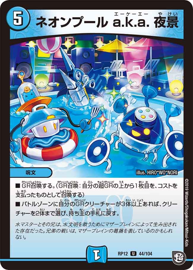 GR召喚する。(GR召喚:自分の超GRの上から1枚目を、コストを支払ったものとして召喚する)バトルゾーンに自分のGRクリーチャーが3体以上あれば、クリーチャーを2体まで選び、持ち主の手札に戻す。