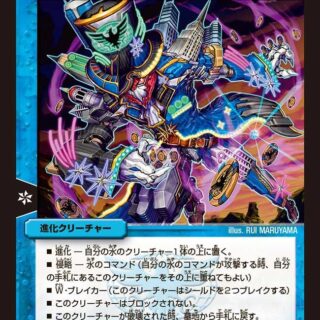 W・ブレイカー(このクリーチャーはシールドを2つブレイクする)このクリーチャーがバトルゾーンに出た時、自分のシールドを1つ相手に選ばせ、手札に加える。(その「S・トリガー」を使ってもよい)