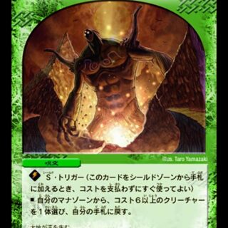 闇文明との戦いが激しい中、なぜマスタークリーチャーのオヴ・シディアは火文明へと進撃するのか…。まぁ、後方支援部隊の私には関係ないことだがな。 — 献身の守り 最世
