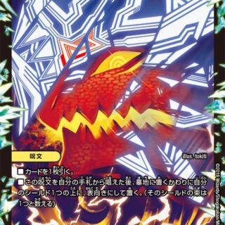 このクリーチャーがバトルゾーンを離れた時、各プレイヤーは自身の手札を1枚選んで捨てる。(ゲーム開始時、GRクリーチャーは山札には含めず、自分の超GRに置き、バトルゾーン以外のゾーンに行った場合、超GRの一番下に戻す)
