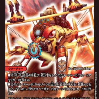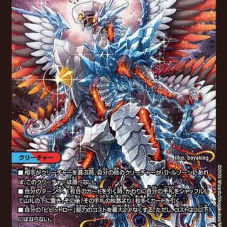 マナゾーンに置く時、このカードはタップして置く。W・ブレイカーこのクリーチャーはブロックされない。マナ武装 4:このクリーチャーがバトルゾーンに出た時、自分のマナゾーンに多色カードが4枚以上あれば、自分の手札を山札に加えてシャッフルし、カードを4枚引き、その後、相手に自分の手札を1枚見ないで選ばせてから、それを見せる。それがクリーチャーなら、バトルゾーンに出してもよい。