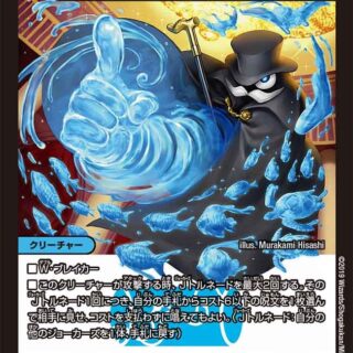 W・ブレイカーこのクリーチャーがバトルゾーンに出た時または攻撃する時、自分の手札を1枚捨ててもよい。クリーチャーを自分の手札から捨てた時、そのターン、このクリーチャーはパワーを+6000され、シールドをさらに1つブレイクする。呪文を自分の手札から捨てた時、相手のクリーチャーを1体選ぶ。そのターン、そのクリーチャーのパワーは-6000される。
