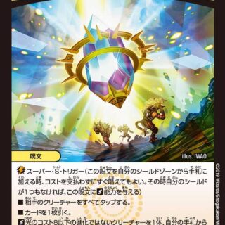 S・トリガー(このクリーチャーをシールドゾーンから手札に加える時、コストを支払わずにすぐ召喚してもよい)このクリーチャーがバトルゾーンに出た時、カードを2枚引く。