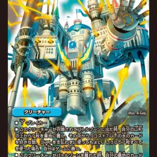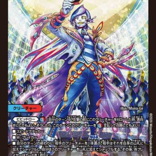 W・ブレイカーこのクリーチャーは、バトルゾーンに出たターンに相手プレイヤーを攻撃できる。このクリーチャーがバトルゾーンに出た時、または攻撃する時、ジョーカーズを1枚、自分の手札から捨ててもよい。そうしたら、それよりコストが小さい相手のカードを1枚バトルゾーンから選び、持ち主の山札の一番下に置く。