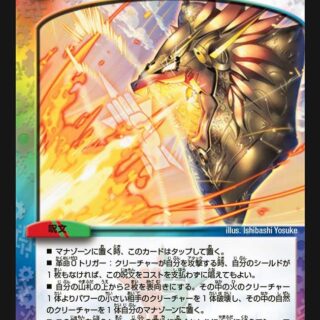 S・トリガー(この呪文をシールドゾーンから手札に加える時、コストを支払わずにすぐ唱えてもよい)自分の山札を見る。その中からカードを1枚選び、自分の手札に加える。その後、山札をシャッフルする。
