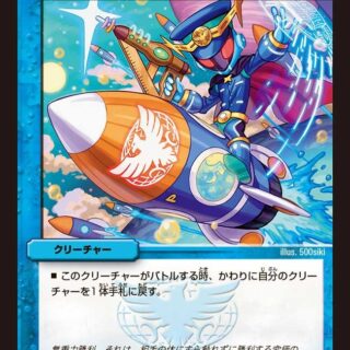 S・トリガー(このクリーチャーをシールドゾーンから手札に加える時、コストを支払わずにすぐ召喚してもよい)このクリーチャー、または自分の他のコスト7以上のクリーチャーをバトルゾーンに出した時、自分の山札の上から1枚目をマナゾーンに置いてもよい。