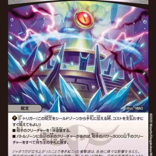 NEO進化:自分の水のクリーチャー1体の上に置いてもよい。(クリーチャーが下にあれば、これをNEO進化クリーチャーとして扱う)このクリーチャーが攻撃する時、自分の山札の上から3枚を表向きにする。その中から呪文をすべて自分の手札に加え、残りを墓地に置く。