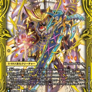NEO進化:自分の自然のクリーチャー1体の上に置いてもよい。W・ブレイカーこのクリーチャーがバトルゾーンに出た時、クリーチャーを2体、自分の墓地からマナゾーンに置く。キズナプラス(このクリーチャーが攻撃する時、その下にあるカードを1枚、自分の墓地に置いてもよい。そうしたら、このクリーチャーと自分の他のクリーチャー1体の oP 能力を使う)oP コスト4以下のクリーチャーを1体、自分のマナゾーンからバトルゾーンに出す。
