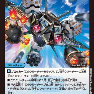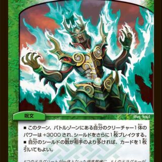 S・トリガー(このクリーチャーをシールドゾーンから手札に加える時、コストを支払わずにすぐ召喚してもよい)このクリーチャーは、アンタップしているクリーチャーを攻撃できる。