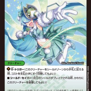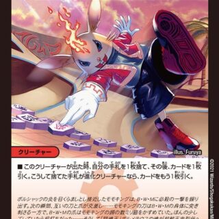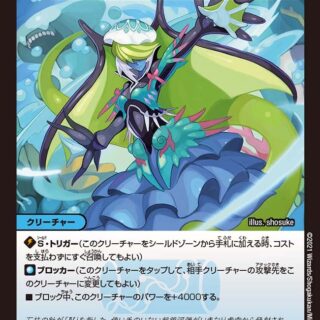 J・O・E 1 (このクリーチャーを、コストを1少なくして召喚してもよい。そうしたら、このターンの終わりに、これを自分の山札の一番下に置く。下に置いたら、カードを1枚引く)スピードアタッカー(このクリーチャーは召喚酔いしない)
