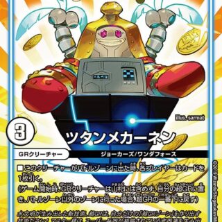 NEO進化:自分の自然のクリーチャー1体の上に置いてもよい。(クリーチャーが下にあれば、これをNEO進化クリーチャーとして扱う)これがNEO進化クリーチャーなら、「パワーアタッカー+7000」と「T・ブレイカー」を与える。(攻撃中、このクリーチャーのパワーは+7000され、シールドを3つブレイクする)