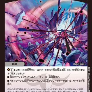 S・トリガー(このクリーチャーをシールドゾーンから手札に加える時、コストを支払わずにすぐ召喚してもよい)このクリーチャーがバトルゾーンに出た時、相手のパワー3000以下のクリーチャーをすべてタップする。