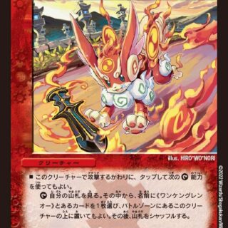 このクリーチャーをバトルゾーンに出した時、自分の山札の上から1枚目を墓地に置く。それがヒューマノイドかドラゴンであれば、そのターン、このクリーチャーは「スピードアタッカー」を得る。