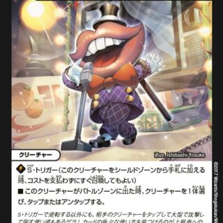 マナゾーンに置く時、このカードはタップして置く。S・トリガー(この呪文をシールドゾーンから手札に加える時、コストを支払わずにすぐ唱えてもよい)次のうちいずれかひとつを選ぶ。 ▼バトルゾーンにある相手のクリーチャーをすべてタップする。 ▼カードを2枚まで引く。