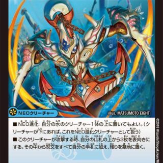 マナゾーンに置く時、このカードはタップして置く。S・トリガー(この呪文をシールドゾーンから手札に加える時、コストを支払わずにすぐ唱えてもよい)相手のパワー3000以下のクリーチャーを1体、破壊する。マナ武装 2:自分のマナゾーンに多色カードが2枚以上あれば、自分の山札の上から1枚目をマナゾーンに置く。