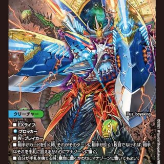 相手のシールドゾーンにあるカード1枚につき、このクリーチャーの召喚コストを1少なくする。ただし、コストは0以下にならない。ブロッカーT・ブレイカー自分のターン中に相手のクリーチャーがタップした時、バトルゾーンに自分のD2フィールドがあれば、次の相手のターンのはじめにそのクリーチャーはアンタップしない。