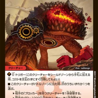S・トリガー(このクリーチャーをシールドゾーンから手札に加える時、コストを支払わずにすぐ召喚してもよい)このクリーチャーがバトルゾーンに出た時、相手のパワー2000以下のクリーチャーを1体、破壊する。