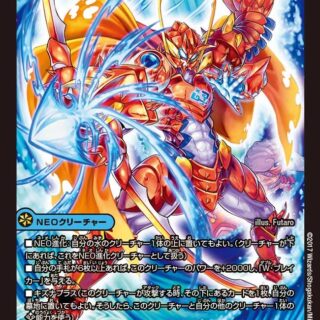 マナゾーンに置く時、このカードはタップして置く。スピードアタッカーT・ブレイカーこのクリーチャーが攻撃する時、バトルゾーンにある相手のコスト8以下のカードを1枚選び、持ち主の墓地に置く。その後、プレイヤーを1人選んでもよい。そのプレイヤーは、自身の墓地のカードをすべて山札に加えてシャッフルする。