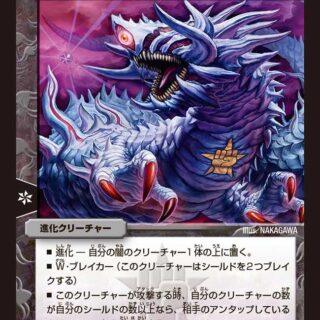 マナゾーンに置く時、このカードはタップして置く。革命チェンジ-光または自然のドラゴン(自分の光または自然のドラゴンが攻撃する時、そのクリーチャーと手札にあるこのクリーチャーを入れ替えてもよい)ブロッカーW・ブレイカーこのクリーチャーがバトルゾーンに出た時、自分の山札の上から1枚目をマナゾーンに置く。その後、多色カードを1枚、自分のマナゾーンから手札に戻してもよい。