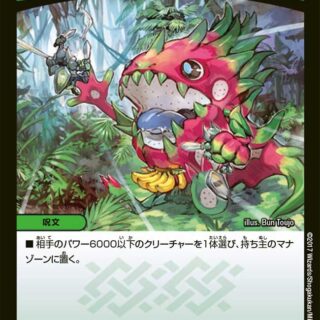 ブロッカー(このクリーチャーをタップして、相手クリーチャーの攻撃先をこのクリーチャーに変更してもよい)このクリーチャーがバトルに勝った時、破壊する。