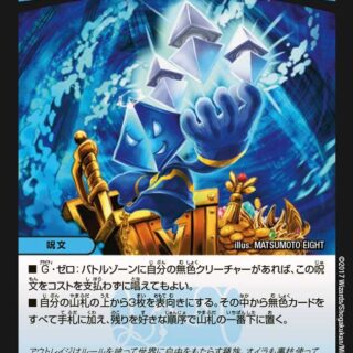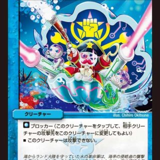 マナゾーンに置く時、このカードはタップして置く。S・トリガー(このクリーチャーをシールドゾーンから手札に加える時、コストを支払わずにすぐ召喚してもよい)ブロッカー(このクリーチャーをタップして、相手クリーチャーの攻撃先をこのクリーチャーに変更してもよい)