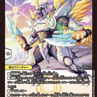 このクリーチャーがバトルゾーンに出た時、自然のクリーチャーをすべて、自分の墓地からマナゾーンに置く。いずれかのプレイヤーのシールドが2つ以下なら、自分のターン中にクリーチャーを1体、自分のマナゾーンから召喚してもよい。