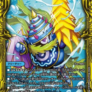 このクリーチャーがバトルゾーンに出た時、自分のクリーチャーの数が自分のシールドの数以上なら、そのターン、自分のクリーチャーはすべてのバトルに勝つ。