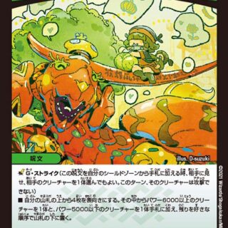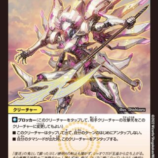 S・トリガー(この呪文をシールドゾーンから手札に加える時、コストを支払わずにすぐ唱えてもよい)相手のパワー5000以下のクリーチャーを1体選び、持ち主のマナゾーンに置く。