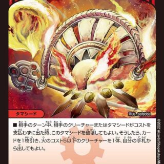 マナゾーンに置く時、このカードはタップして置く。進化-自分の水または火のクリーチャー1体の上に置く。このクリーチャーをバトルゾーンに出した時、またはこのクリーチャーが攻撃する時、カードを1枚引いてもよい。W・ブレイカー(このクリーチャーはシールドを2枚ブレイクする)