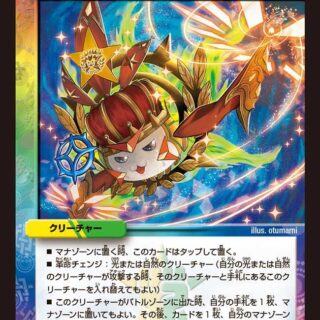 マナゾーンに置く時、このカードはタップして置く。S・トリガー(この呪文をシールドゾーンから手札に加える時、コストを支払わずにすぐ唱えてもよい)次のうちいずれかひとつを選ぶ。 ▼コスト6以下の進化ではないクリーチャーを1体、自分の墓地からバトルゾーンに出す。 ▼バトルゾーンにある自分と相手のクリーチャーを1体ずつ選び、その2体をバトルさせる。