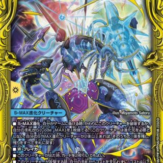 W・ブレイカーこのクリーチャーが攻撃する時、各プレイヤーは自身の手札を1枚捨てる。革命2―自分の手札から闇のクリーチャーを捨てた時、自分のシールドが2つ以下なら、そのクリーチャーをバトルゾーンに出す。