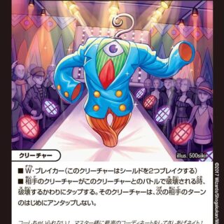 相手のクリーチャーが攻撃する時、可能であればこのクリーチャーを攻撃する。自分の他のクリーチャーすべてに「ガードマン」を与える。(「ガードマン」を持つクリーチャーをタップして、相手クリーチャーの攻撃先を、自分の他のクリーチャーからそのクリーチャーに変更してもよい)
