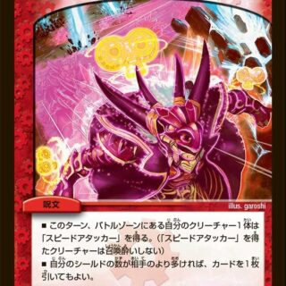 このクリーチャーがバトルゾーンに出た時、カードを1枚引く。革命2―このクリーチャーが破壊された時、自分のシールドが2つ以下なら、光のコスト7以下の進化ではないクリーチャーを1体、自分の手札からバトルゾーンに出してもよい。